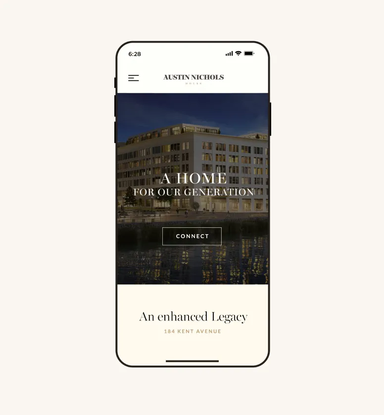 Rebrand the 184 Kent Ave rental property as luxury waterfront condominiums that capture the interest of Manhattan buyers moving to Brooklyn. This required showcasing the distinguished history of the property, as well as embedding it into Williamsburg’s rich cultural scene.